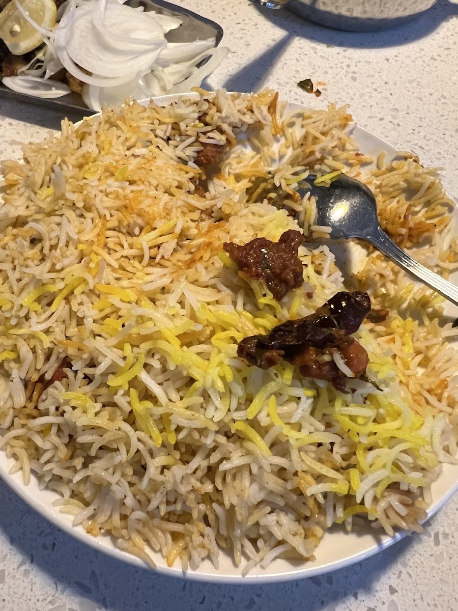 The place has a big parking lot outside. They have a big vegetarian friendly menu. Veg keema biriyani is worth the try. They have a tea and snacks station at the back of restaurant. Food is good and service is fine. They have indian style pastry as well.